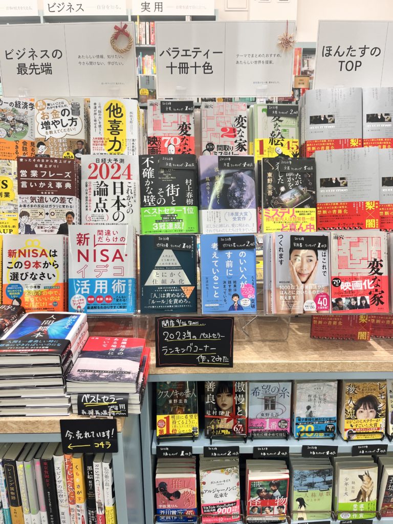 総合書店でよく見かける売れ筋書籍が、ジャンルを問わずに集められている印象。