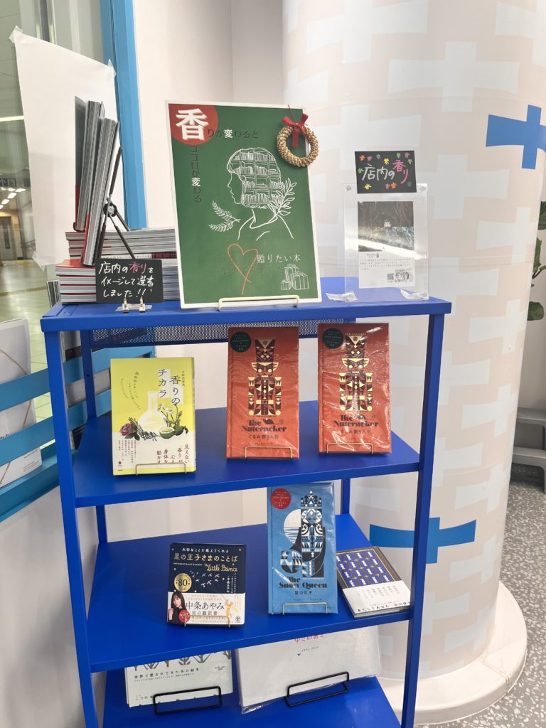 入り口左手には使用されている香りの説明ポップと共に、「店内の香りをイメージして選書しました!」のコーナーが。