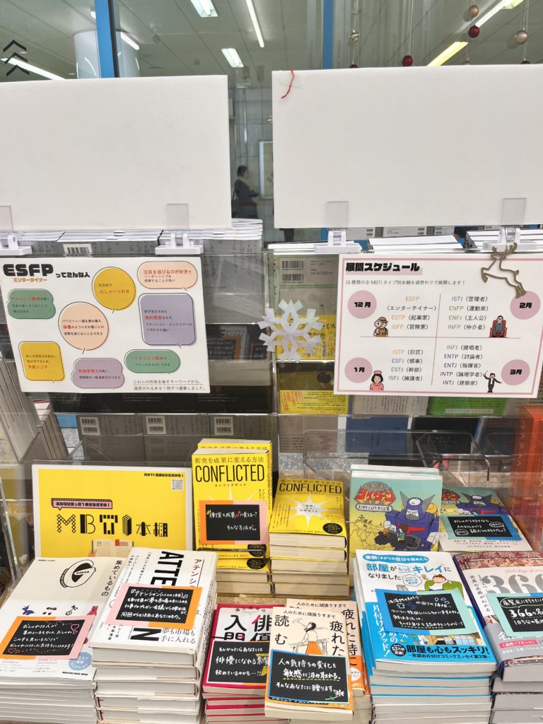少し前からよく耳にする、MBTI16タイプ性格診断。期間ごとに各タイプのひとへのおすすめ書籍を集めた特集コーナーが組まれていた。